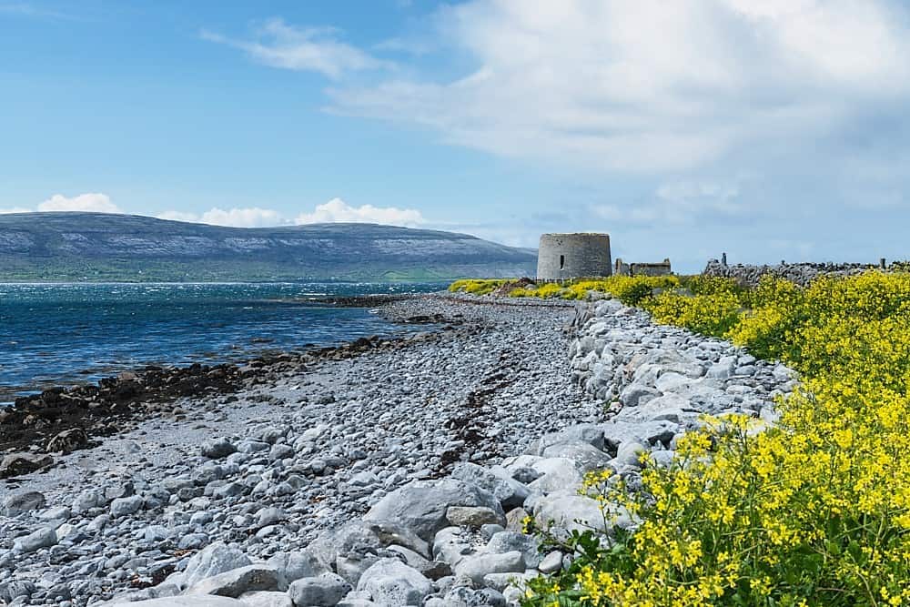 Auf der Fahrt entlang der Küste nördlich des Burren ist die Landspitze Finavarra Point weithin sichtbar. Auf ihr thront ein Martello Tower, der hier zum Schutz der Küste Anfang des 19. Jahrhunderts errichtet wurde.